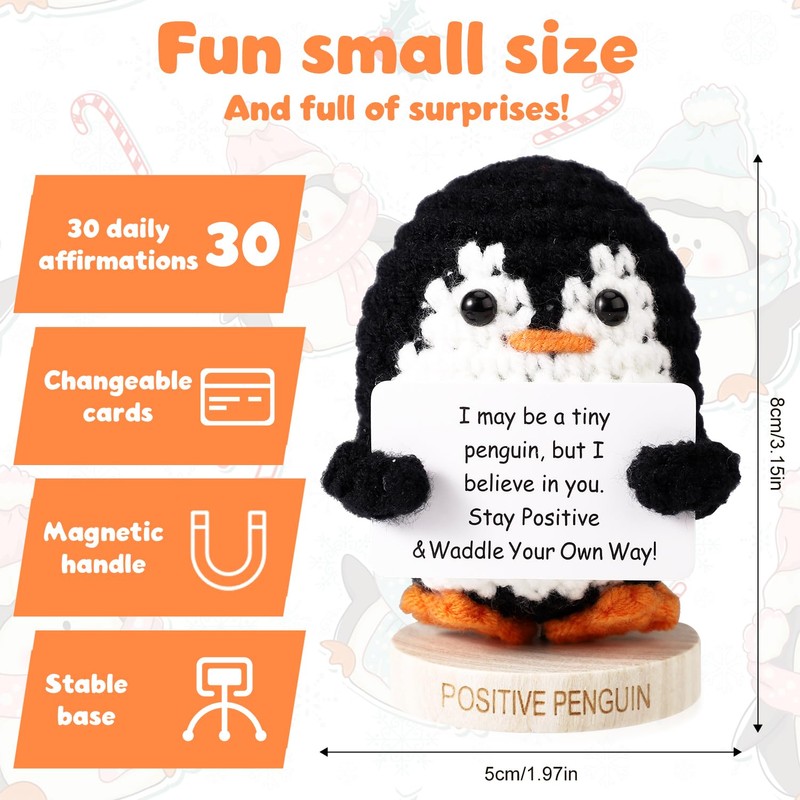 - Package Contents: You will receive 1 piece of the positive penguin, measuring about 7x5.5x5cm/2.76x2.17x1.97in, 1 piece of wooden base and 30 cards. Unique and heartwarming, they can meet your daily needs.