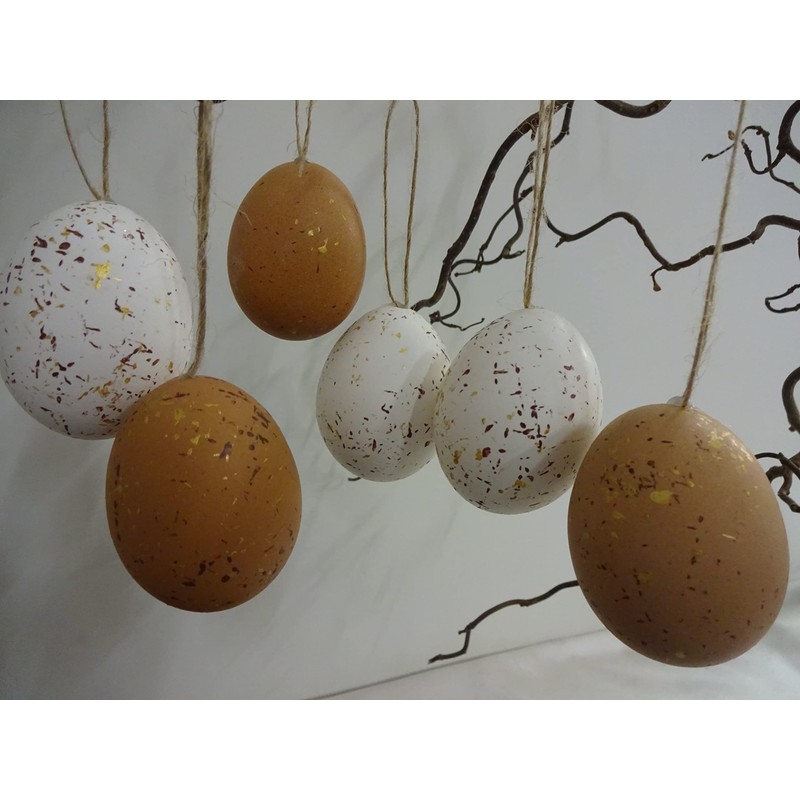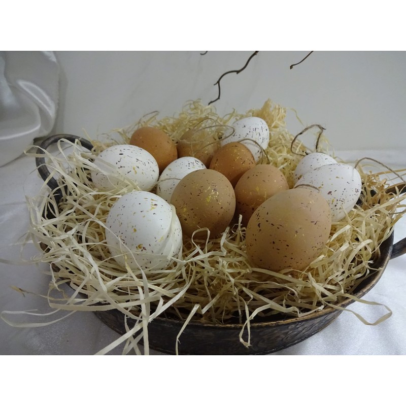 - 12 real chicken eggs in brown and white painted with golden and brown speckles