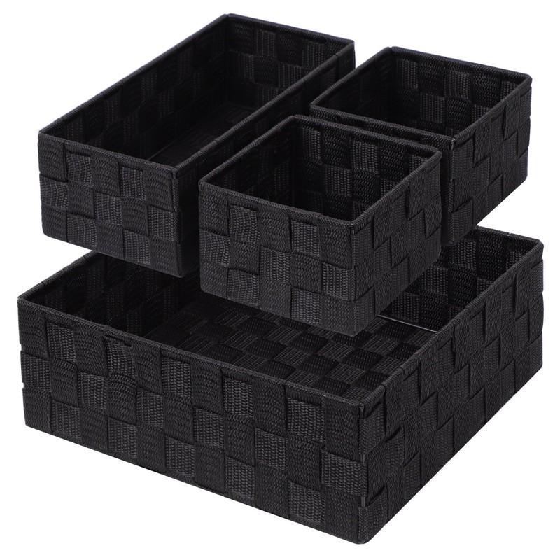 Posprica Posprica Woven Storage Baskets for Organizing, Small Black Baskets Cube Bin Container Tote Organizer Divider for Drawer, Closet, Shelf, Dresser, Set of 4