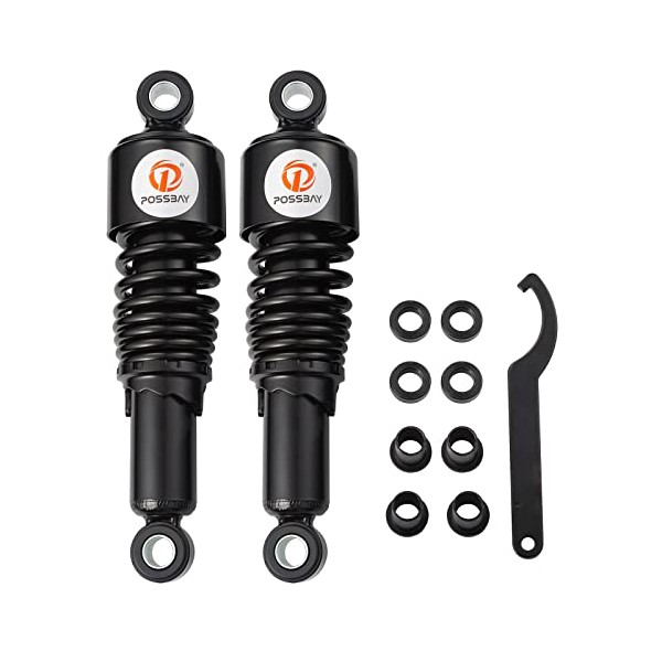 Possbay Motorcycle Shock Motorcycle Rear Shock 10.5"/267mm Universal Rear Suspension 1Pair Black