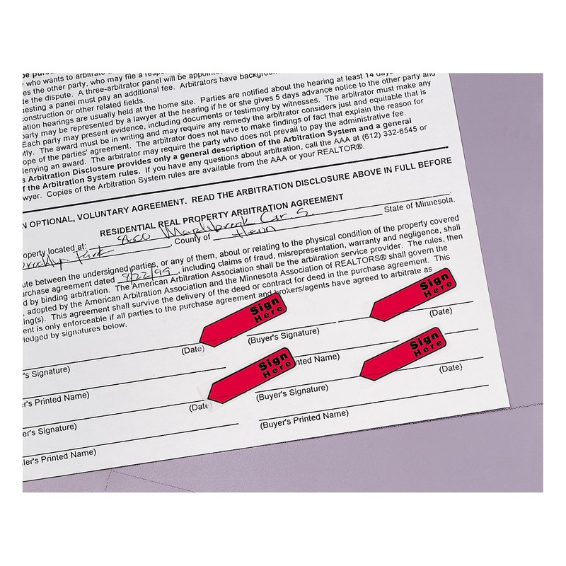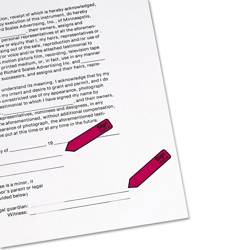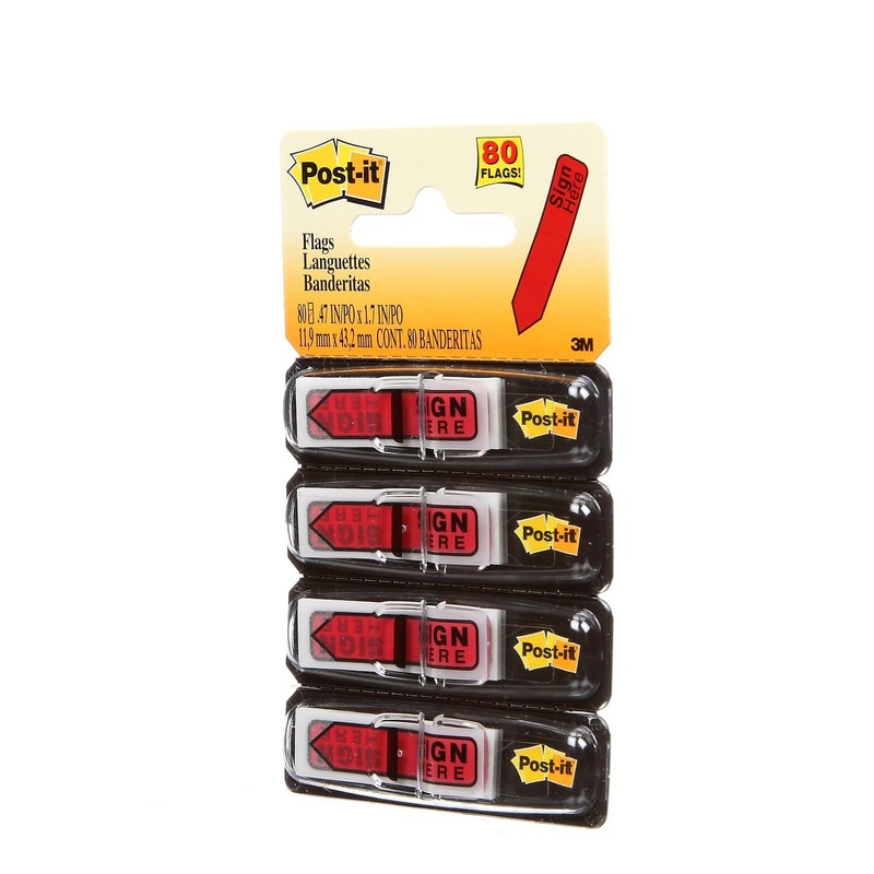 Post-it 684RDSH Arrow Message 1/2-Inch Page Flags in Dispenser, "Sign Here", Red, 80/Pack