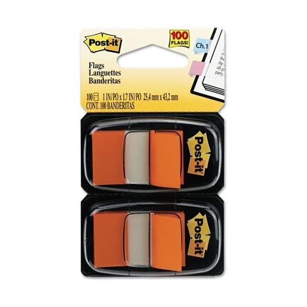 Post-it Flags, 1 inch, Orange Two Dispensers of 50 Flags, 4 Pack (680-OE2)