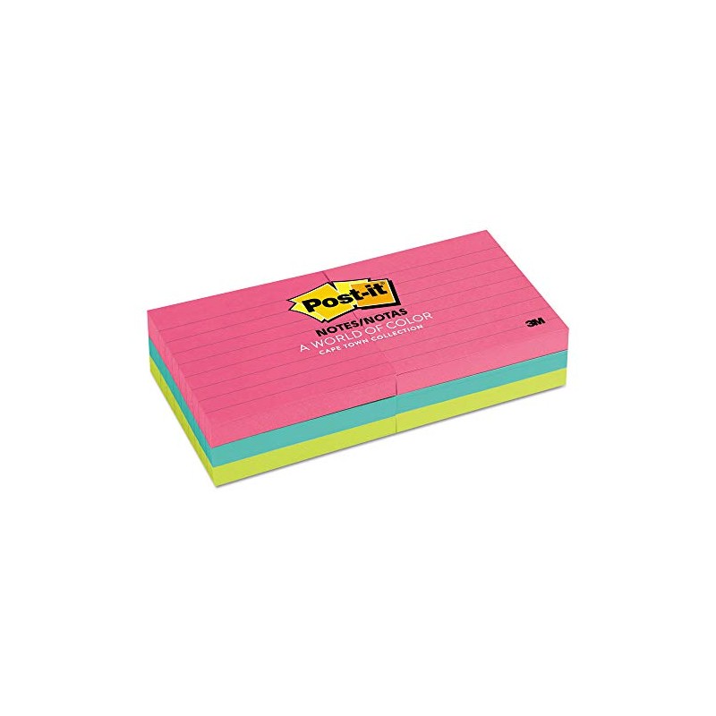 3M Commercial Office Supply Div. Post-it Notes, Lined, 3" x 3" 6/pk, 100 Sh/Pad, Neon FusionPost-it are the ideal size for sheet music, numbers and lists. Repositionable adhesive does not mark paper and other surfaces. Attach notes without staples, paper clips or tape. Use the self-adhesive strips at the top to place them on papers, desks and other places where you need a reminder. Notes are lined covers for subsequent mounting options. Paper comes from sustainable forestry used where trees are transplanted.