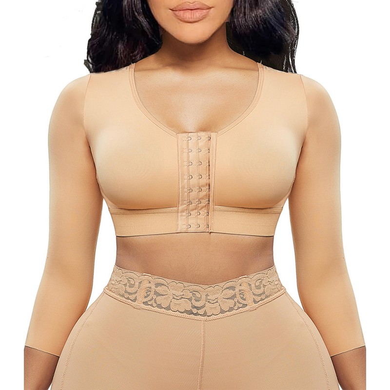 Post Op Arm Compression Sleeve Lipo Front Closure Faja Post Surgery Bra Shapewear Garments Surgical Back Fat Support Shaper (Beige, 3X-Large)