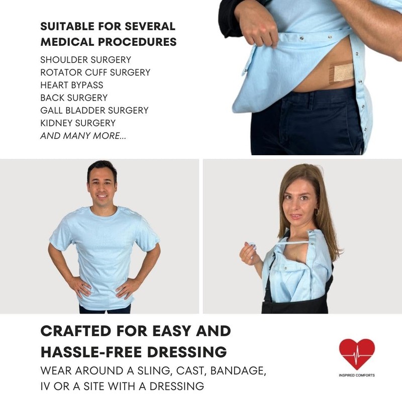 Inspired Comforts Post Surgery Shirt with Left & Right Side Access Snaps