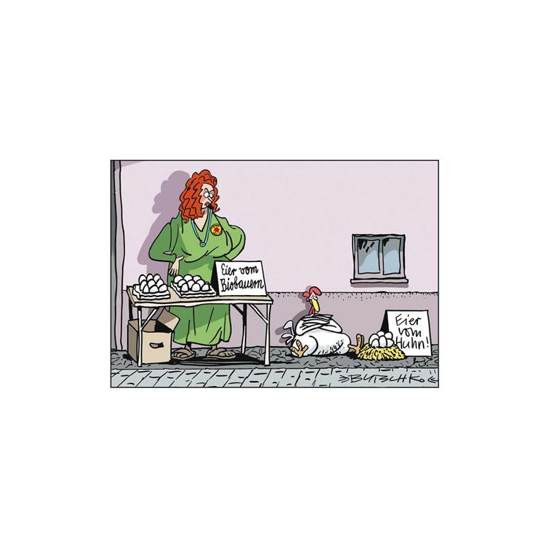 Postcard A6 + CARTOON by modern times +++ Eggs from Organic Farmers +++ Kopenicker CG © Butschkow, Peter