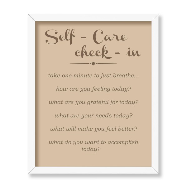 Poster Master Self Care Poster - Self Care Check In Print - Mental Balance Art - Therapy Art - Gift for Him, Her - Motivational Decor for Office, Living Room, Bedroom, 16x20 White Framed