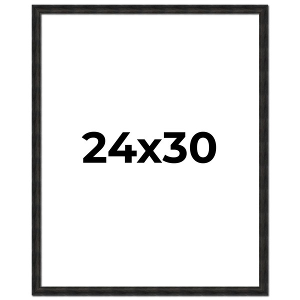 Poster Palooza 24x30 Frame Black Barnwood Distressed/Aged Solid Wood Picture Frame | 1 Inch Moulding Width | with UV Acrylic Plexiglass, Foam Board Backing & Hanging Hardware Included