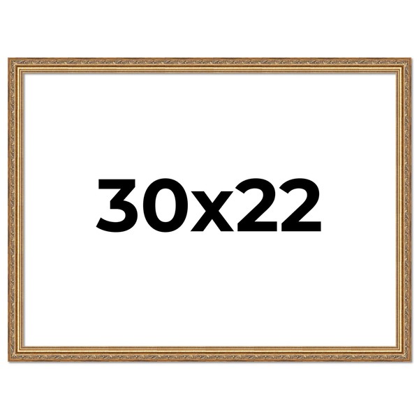 - ⭐ COMPLETE WOOD PICTURE FRAME: Antique Gold Finish - Made To Display Photos, Artwork, Canvases, Chalk Boards, Documents, Mirrors, Puzzles, Mementos, Kids Drawings, Bulletin Boards, Diplomas, Certificates, and All Other Media Measuring 30x22 or 22x30 inches (55x75 or 75x55 cm).