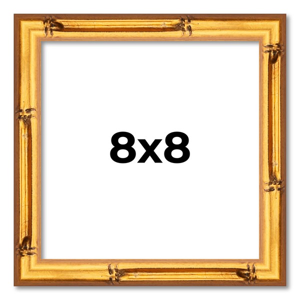 Poster Palooza 8x8 Frame Gold Bamboo Solid Wood Picture Frame with UV Acrylic, Foam Board Backing & Hanging Hardware Included