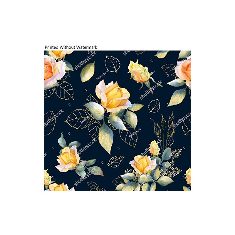 Poster Reproduction of Picturesque seamless pattern with rose arrangements, gold leaves and rosebuds hand drawn in watercolor isolated on a dark background. Watercolor floral background. Ideal