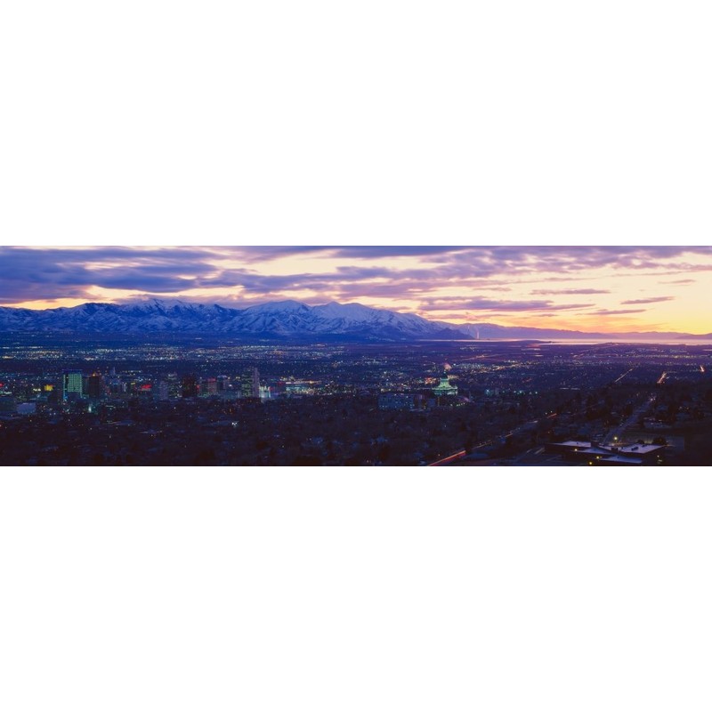 Posterazzi Panoramic sunset of Salt Lake City with snow capped Wasatch Mountains Poster Print, (12 x 39)