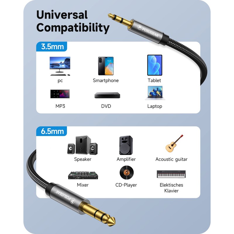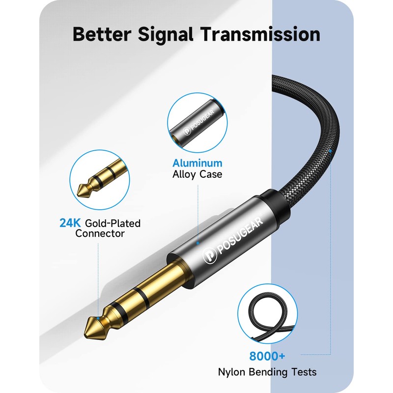 - What You Get: 1x 5m POSUGEAR 3.5mm 1/8 inch to 6.35mm 1/4 inch TRS stereo jack audio cable, our 18-month warranty and friendly customer service!