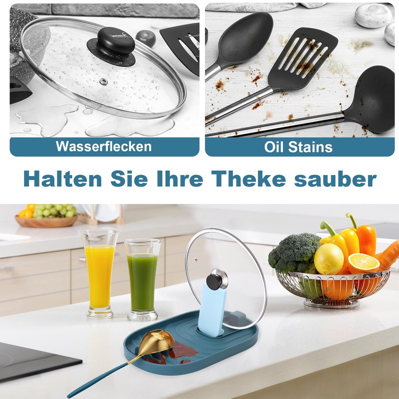 - Multifunctional storage: the spoon rest measuring 18 x 11.5 x 2.2 cm not only holds pot lids, but also cooking spoons, spatulas, chopsticks, recipes and other small kitchen utensils and keeps the kitchen table tidy for multifunctional storage.