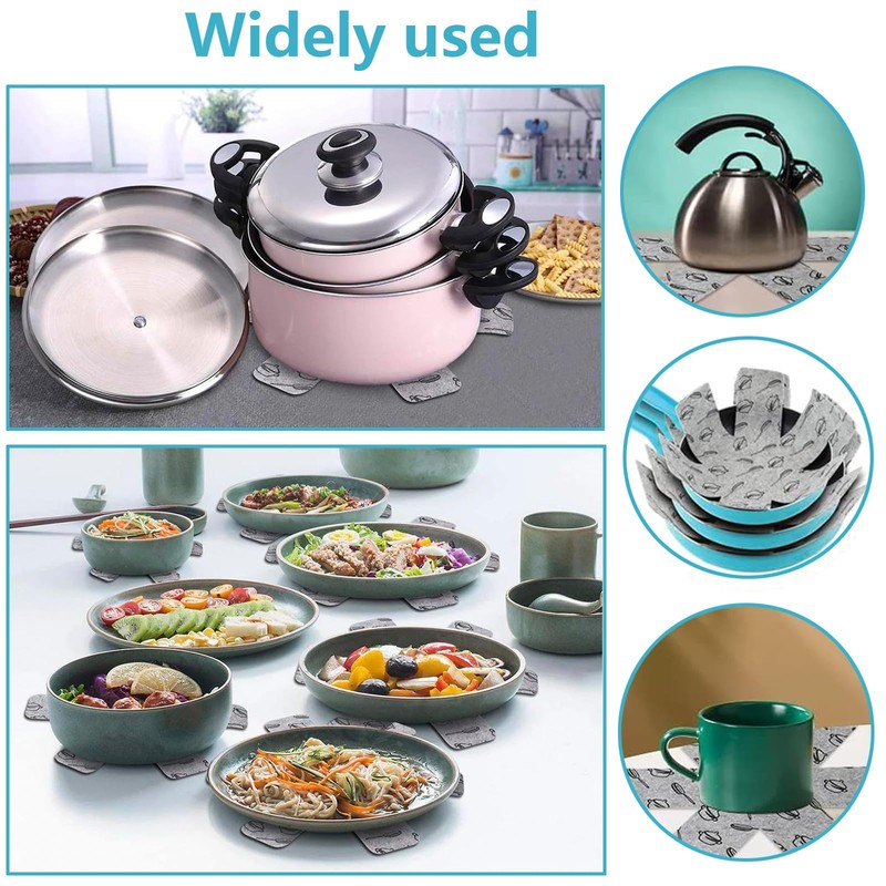 • Optimal protection: Place this protector between pots and pans to avoid scratches and save the non-stick coating of the pots, which extends the life of the pots. You can also use them to prevent the hot pot from damaging your furniture.