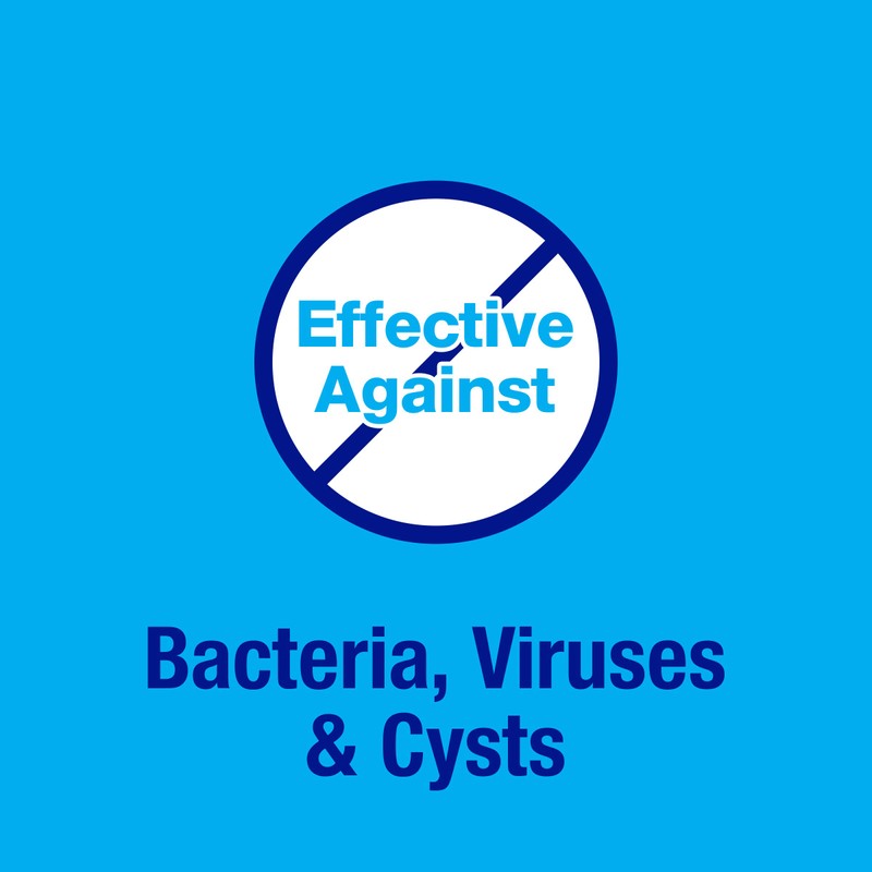 • Emergency water purification tablets for drinking water are effective against bacteria, viruses and cysts, such as Giardia lamblia and Cryptosporidium when used as directed