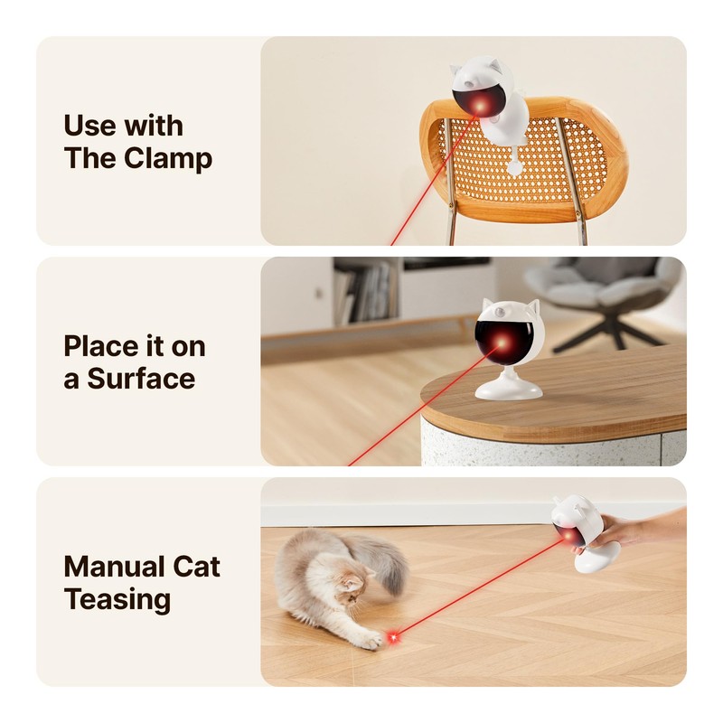 - Versatile Dual-Clip Design: The dual-clip design allows you to clamp this toy anywhere in your house, from chairs to doors. This versatility ensures your pet can enjoy their favorite game of chase no matter where you place the toy.