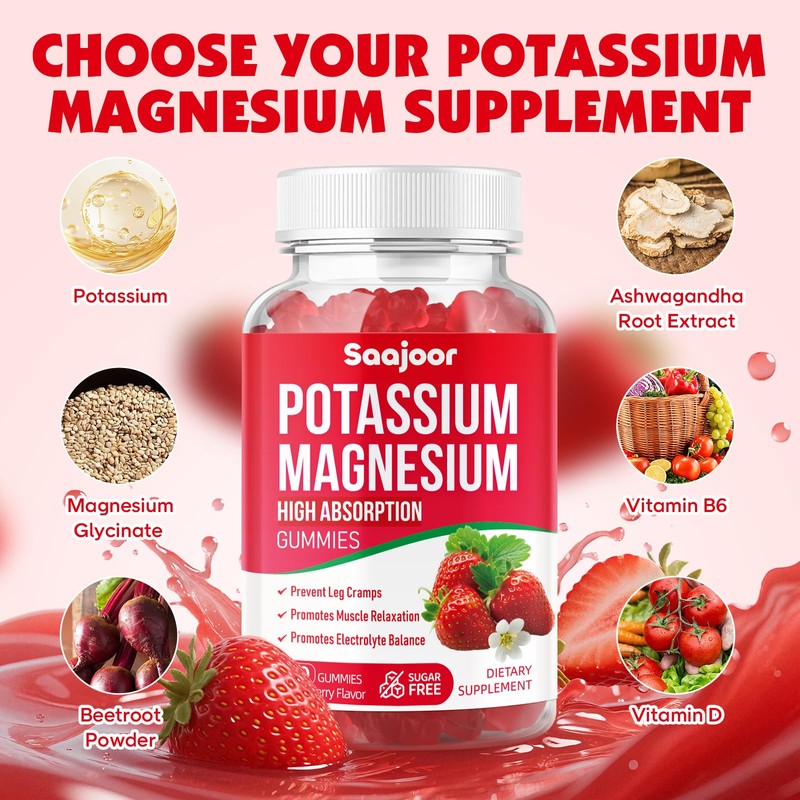 - High Potency Potassium Magnesium Gummies: Potassium Magnesium Gummies Contain Potassium Citrate 200 mg,Magnesium Glycinate 600 mg,Magnesium L-Threonate 400 mg,Ashwagandha,Vitamin D3,B6,Beetroot Powder. 2 Gummies Per Serving,60 Servings Per Bottle, for better protection and vitality!