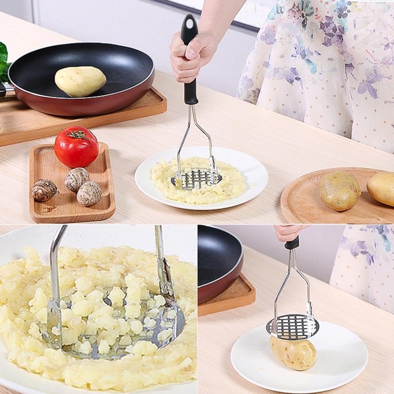 - [EASY TO CLEAN] : The potato mashers' handle and stainless steel potato masher are incredibly simple to clean. under warm or hot water from the faucet. Dishwasher security