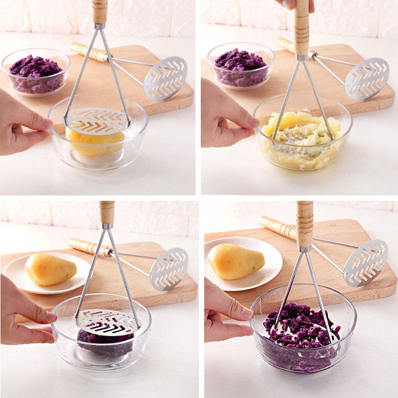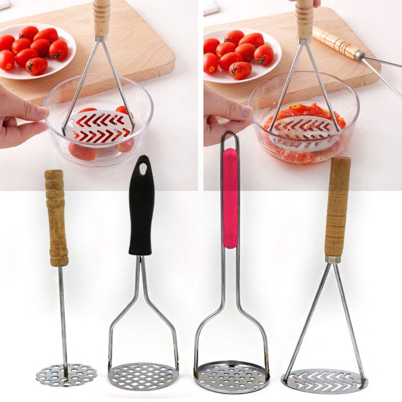Potato Masher Stainless Steel Non-Slip Handle Multifunctional Fruit Vegetable Kitchen Masher Type D 2 Pack