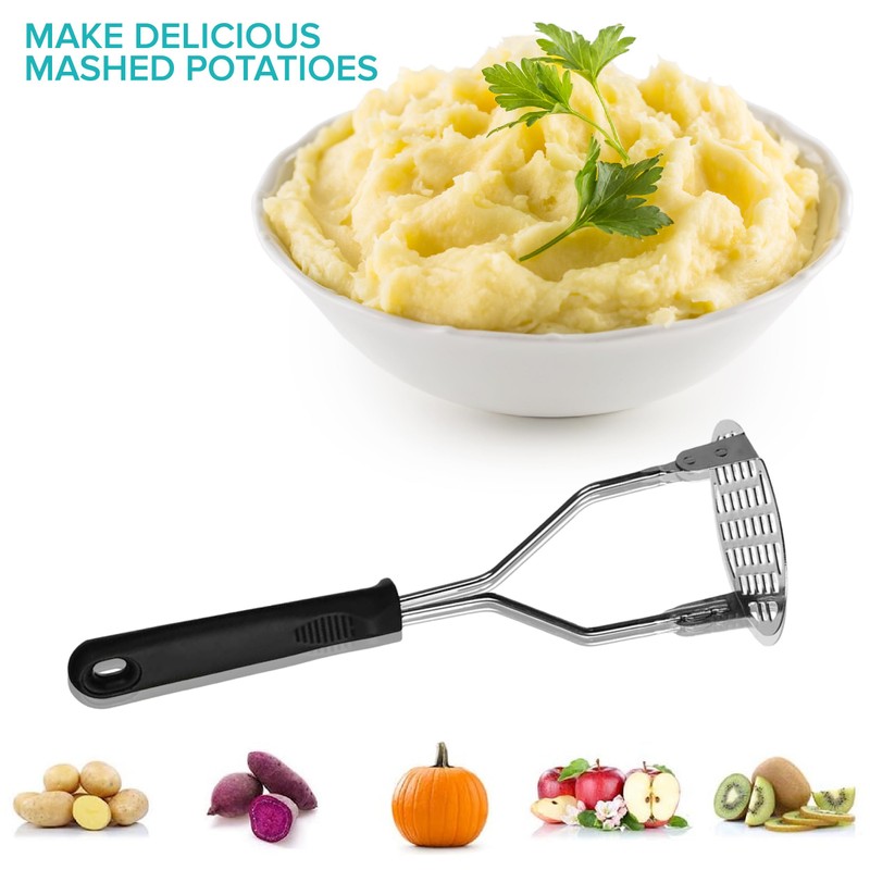 - There is a wide cross-section base that is disseminated equally, making it simple to pulverize the crushed food from the base, totally ideal for pounding potatoes, squash, yam, and bananas - crushes food to a fine consistency. Simple to plan incredible tasting, culinary specialist style, sound side dishes for your family with this wizardry potato press
