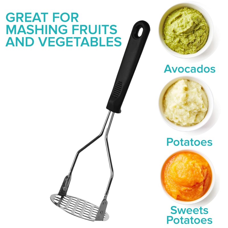 Potato Masher Stainless Steel Potato Ricer with Soft Grip Non-Slip Handle, Kitchen Non-Stick Food Masher for Mashed Potatoes, Baby Food, Jam, Vegetable & Fruits