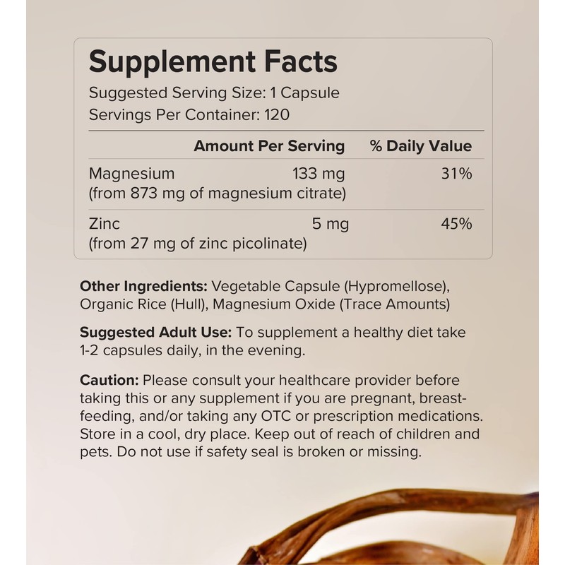 Potent & Pure Magnesium & Zinc Complex - Fully Reacted Magnesium with Chelated Zinc Picolinate - by Rootcha | 120 Capsules