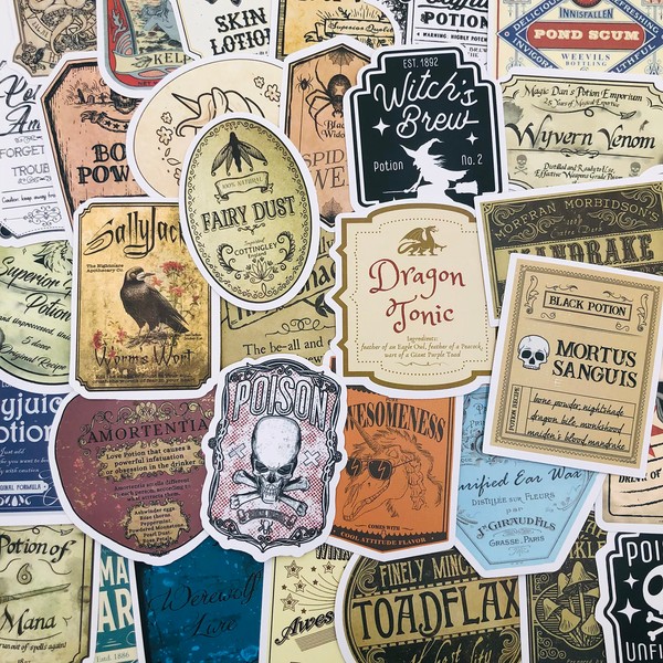 Potion Label Stickers - Witch Poison Potions Magic Craft Waterproof Durable Reusable Vinyl Decals, 10, 20, 50, Water Bottle Bike Bumper Luggage Skateboard Graffiti, Best Gift for Everyone (20)