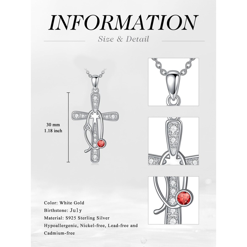 POTOPYY Stethoscope Necklace S925 Sterling Silver Stethoscope Cross Pendant with July Birthstone Nurse Necklace Nurse Jewelry Gifts for Doctor Nurse Medical Graduation Student Veterinary RN