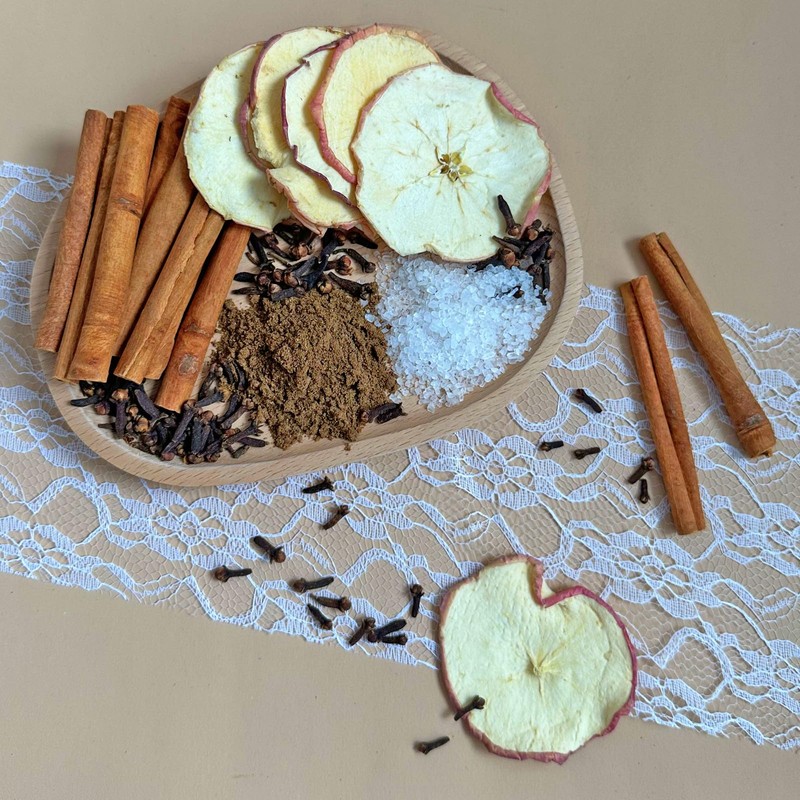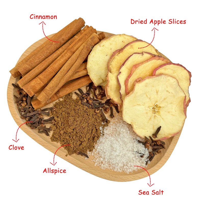 - Stewing Method: Just add dried apple slices, clove, cinnamon, Allspice, and vanilla salt to the pot, pour 2 cups of water, and stew on the stove, or add the ingredients to a clay pot with 2 cups of water, boil, and simmer for 20-30 minutes. Open during the day and let your house smell wonderful!