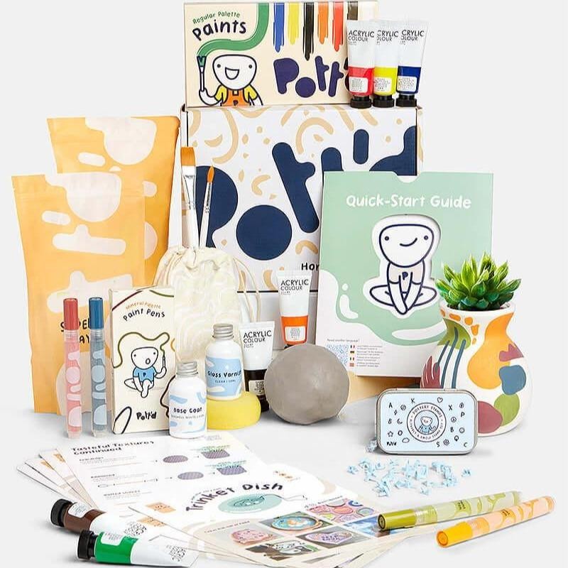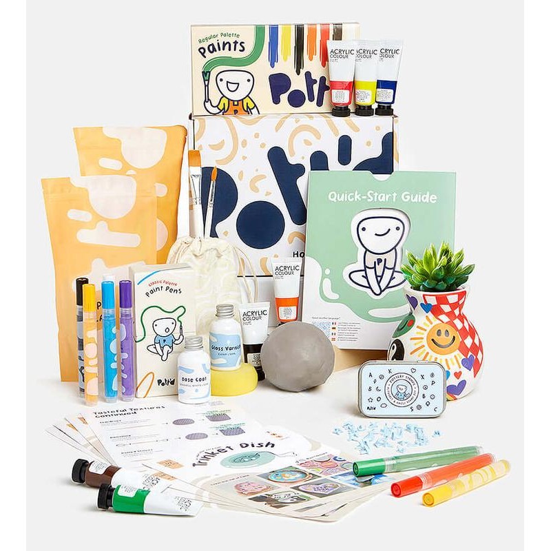 Pott'd Deluxe Home Pottery Kit - Paints + Pens: Regular Paints + Mineral Pens