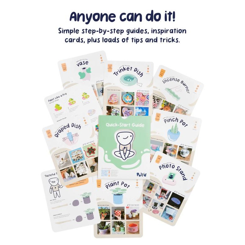 📝 1 x Pott’d quick-start guide with step-by-step instructions, and inspiration to create a whole bunch of creative pottery