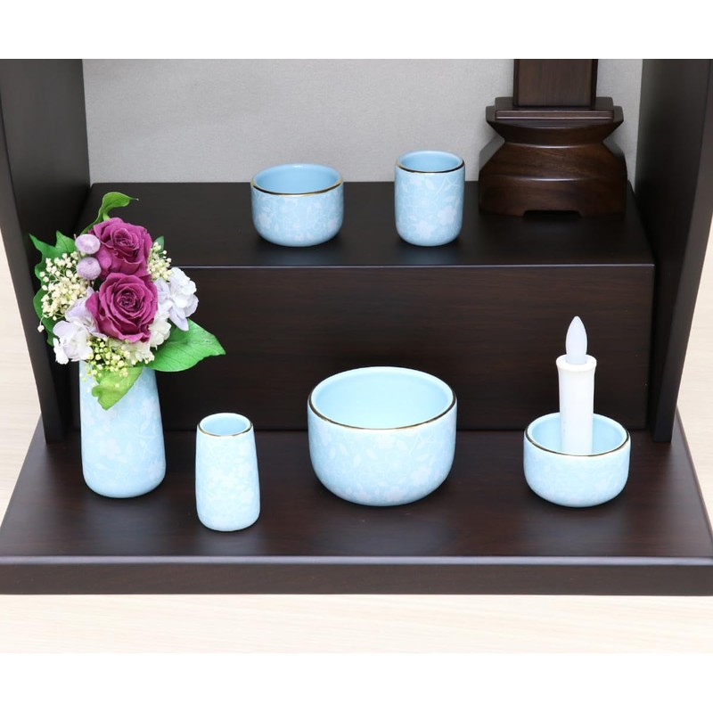 Pottery Buddhist Utensil Set, 6 Pieces, Cosmos Blue