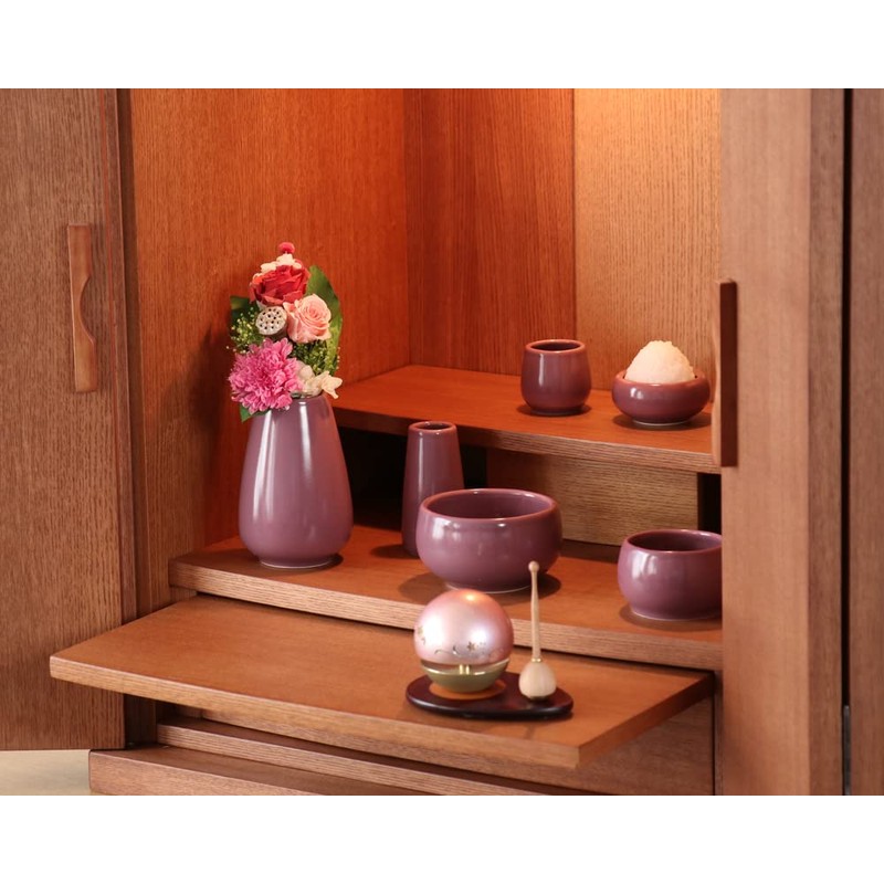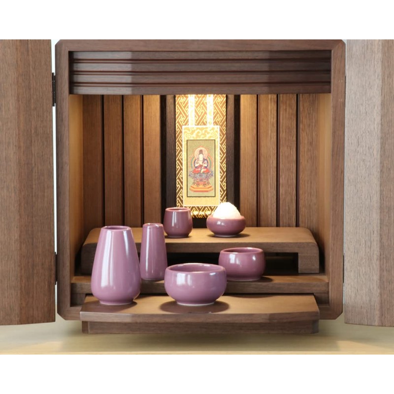 Pottery Buddhist Utensils, Momiji, Set of 6, Perfect for Mini Buddhist Altar, Purple