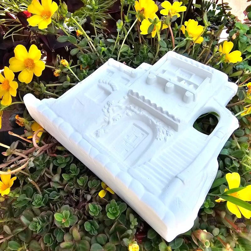PotteryPie Village House Wall Plaque 9" IN STOCK Ceramic Bisque Ready Paint Pottery