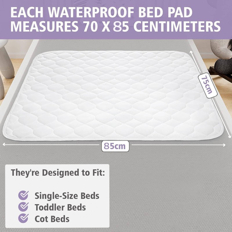 - ⭐Pack includes 2 potty training bed pads (85cm x 70cm) that are ideal for night time potty training and waterproof protection for your child's mattress. Fits single bed, cot beds and cots.