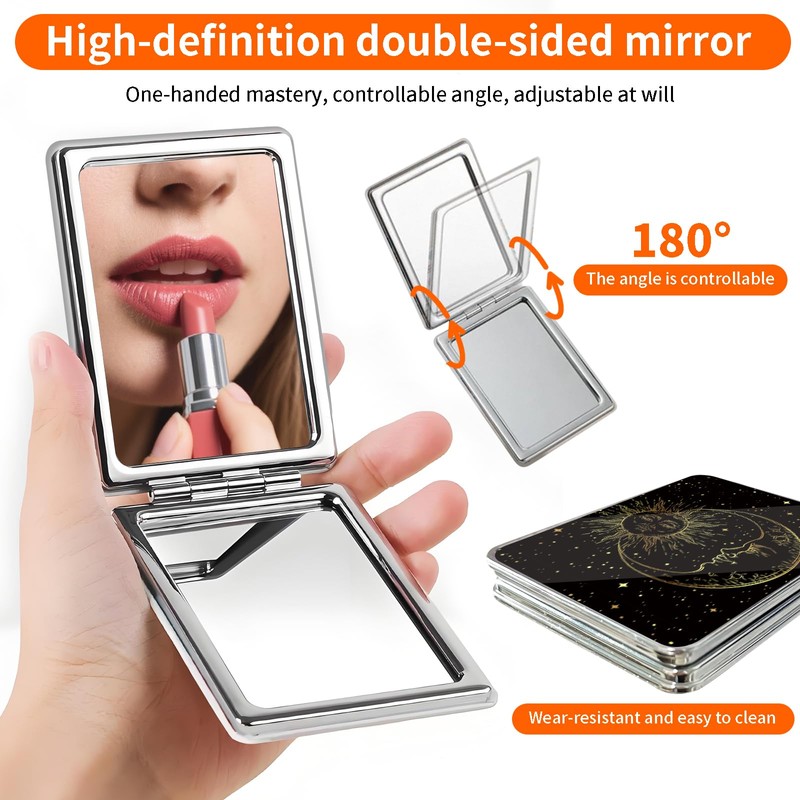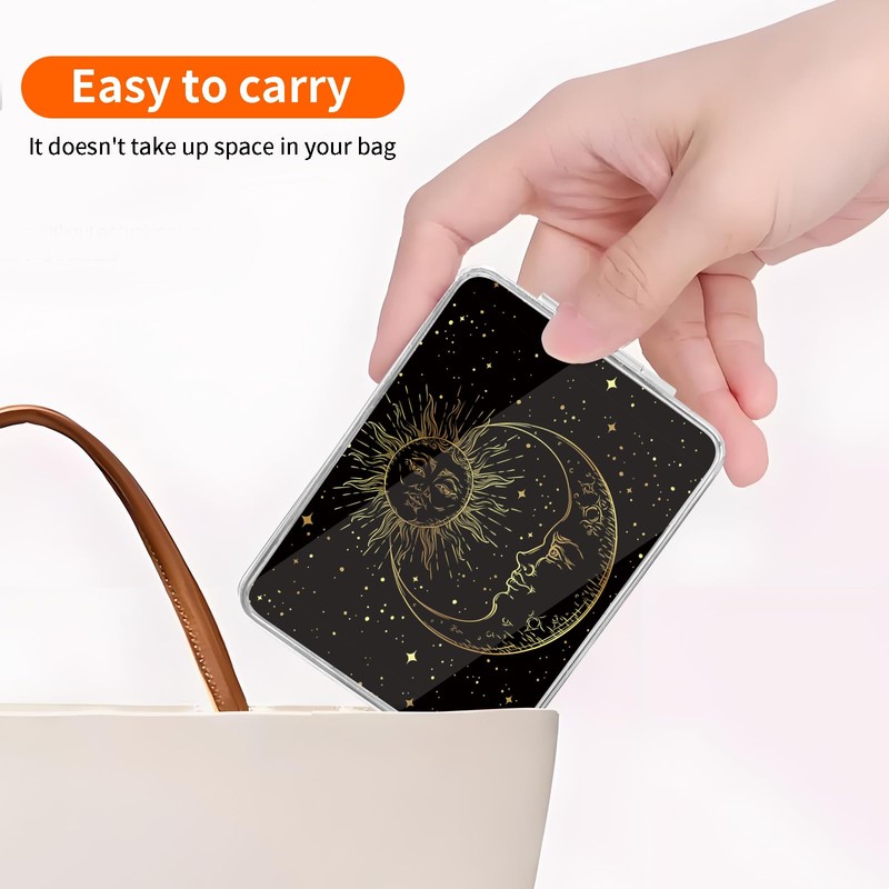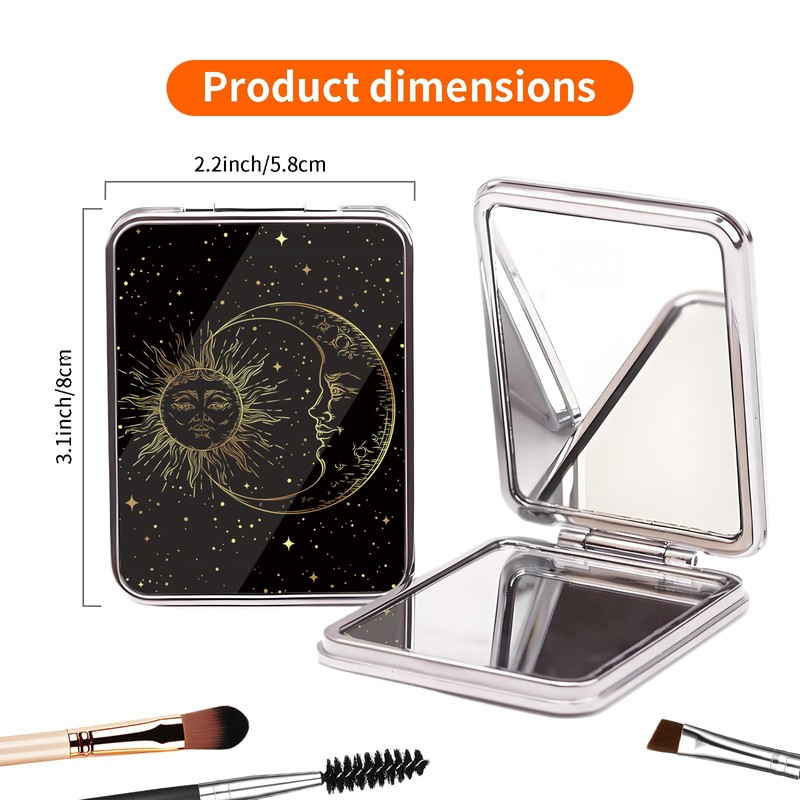 POTYHDC Compact Pocket Mirror, Cute Travel Mini Mirror with Magnification, Foldable Double-Sided Portable Cosmetic Mirror for Men, Women Tarot Moon and Sun