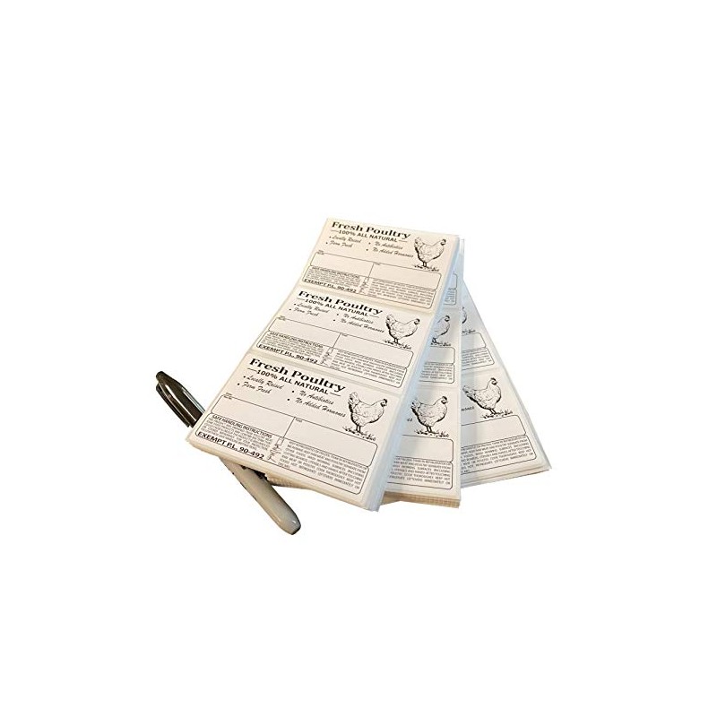 Our freezer labels are perfect for the backyard poultry / small producer / grower. Our permanent labels are tear resistant. These labels are resistant against smudging and extremely durable. These labels work great with poultry shrink bags. Also with the food safety warning and attractive poultry graphics these stickers will help your poultry stand out at any farmers market. Note that the food safety label does not say that the meat was inspected. For the best results dry all surfaces before applying our labels. If you are someone who sells poultry in your local area these labels are a great option for you.