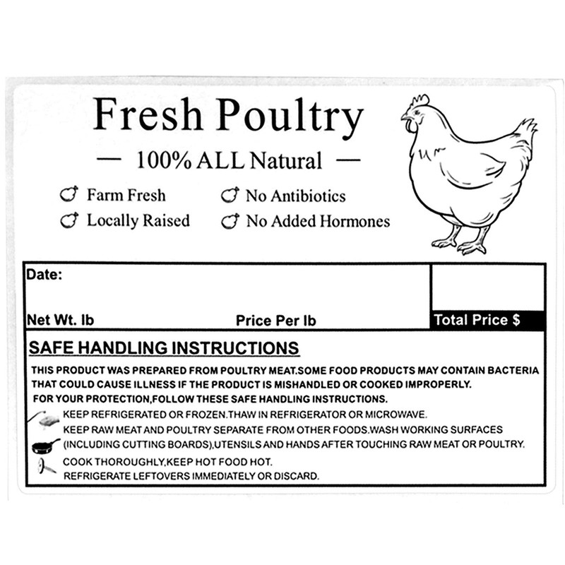Poultry Freezer Labels,4x3 Inch with Handling Instructions Exemption,50 Pcs