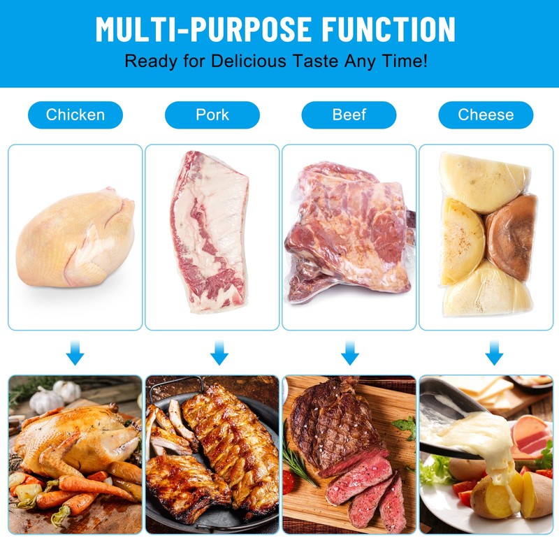 - Keep Food Fresh Longer: Extends food fresh 3-5 times longer, perfect for wrapping the poultry. Transparent heat shrinkable bags can store a variety of food, such as chicken, rabbit, duck, goose, beef, fish, ham, turkey and other meats