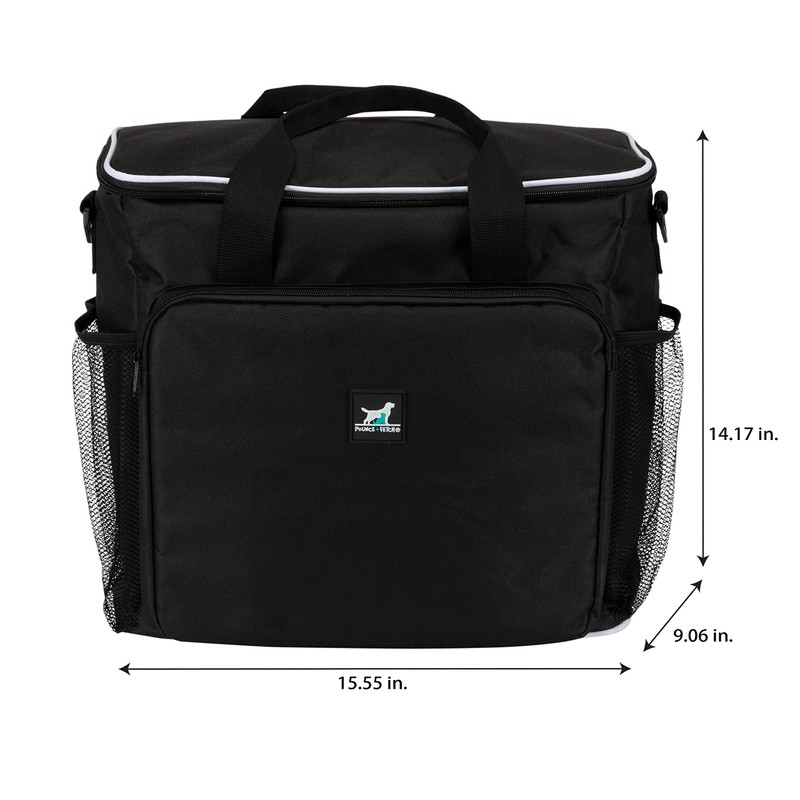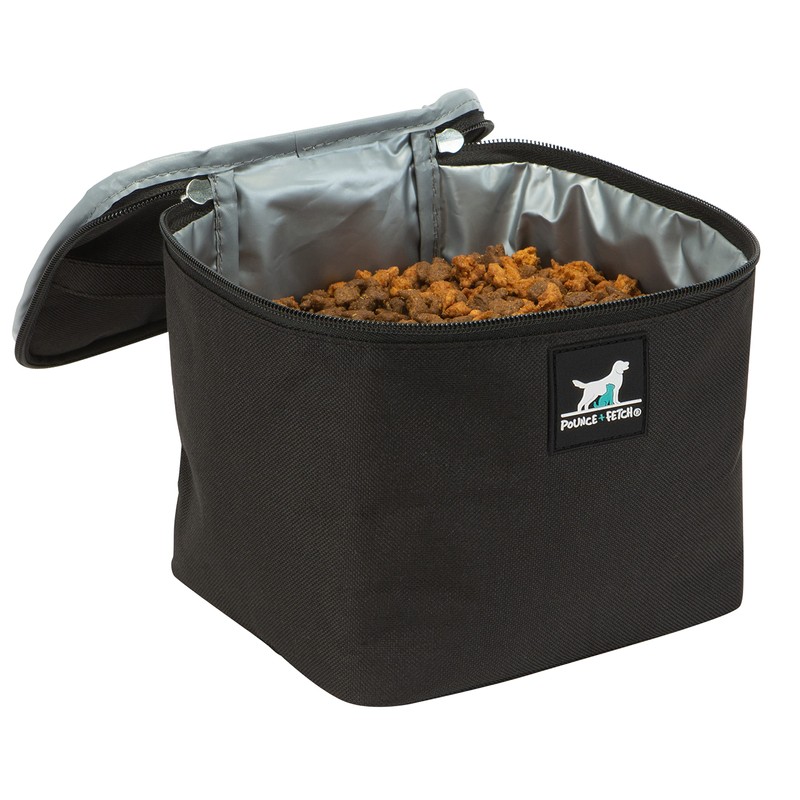 Pounce + Fetch Small Pet Weekender Bag | 3pc Travel Bottle Set | Water & Food Containers, Black