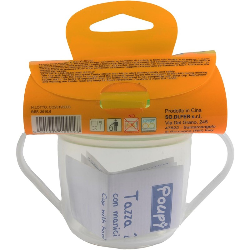 POUPY BPA Free Kids Plastic Cup with Two Handles and a Lid with Spout, Washable and Reusable