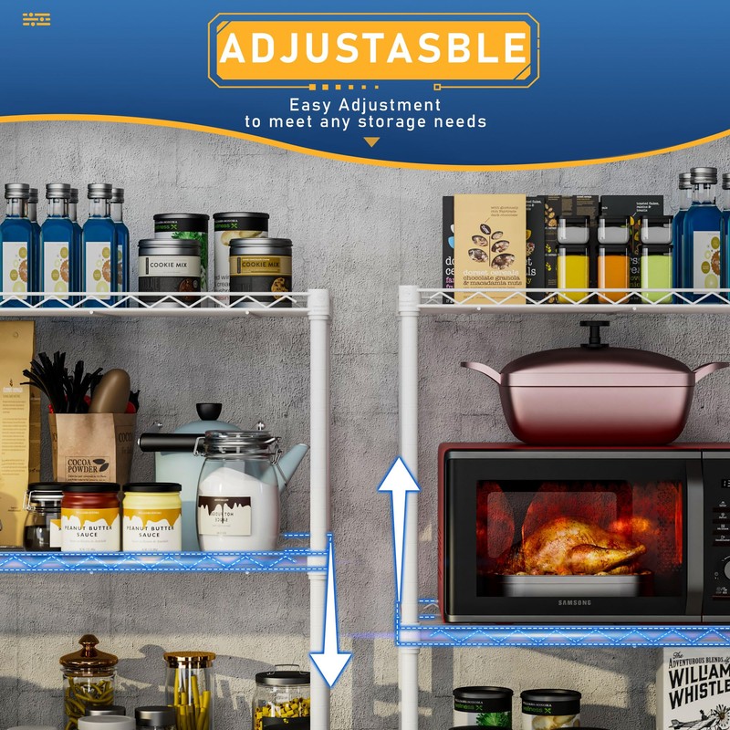 - ✅【CUSTOMIZABLE HEIGHT AND SPACING】The shelving unit offers flexibility with adjustable heights for each layer using high-quality clips. You can also customize the spacing between layers according to your needs, creating a personalized storage unit that suits your specific items.