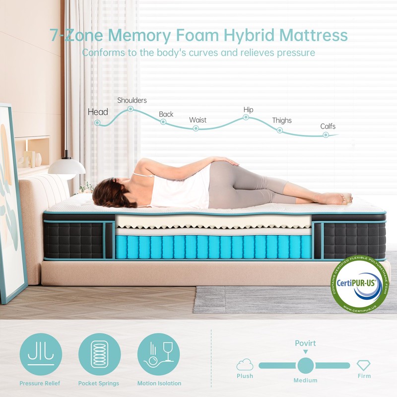 - đ„ăMedium Firm Hybrid MattressăOur full hybrid mattress combines foam and pocket springs to offer excellent support, adapting to your body's curves and weight distribution. Whether you prefer sleeping on your side, back, or stomach, this medium-firm mattress effectively relieves pressure, promising a comfortable night's sleep.