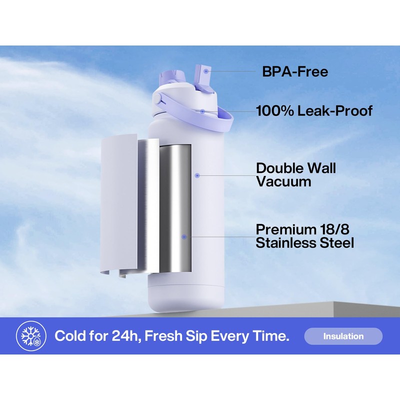 • Generous Capacity: 32 oz provides ample hydration for an entire day; it's ideal for sports, travel, or everyday use; Note: 32 oz does not fit in standard car cup holders