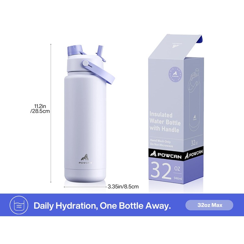 POWCAN Insulated Water Bottle features double-walled insulation design technology to ensure it stays cold for hours on end. Whether in winter or summer, POWCAN ensures the perfect sip with hot tea, iced coffee, or iced drinks. Its innovative 2-in-1 lid combines a straw and a spout cover to ensure you enjoy it every time, whether it's a small sip or a big sip. The bottle is made of stainless steel and is leak-proof, carry it with confidence and keep your bag dry even on exciting adventures. Designed to fit in a car cup holder, it is convenient for enjoying drinking water anytime, anywhere, whether in the office or in school. The perfect size avoids spills and dumping, making it easy to carry and become your indispensable companion. POWCAN is not only a water bottle, but also a symbol of quality life. With its high-quality materials and BPA-free structure, durable and safe, allowing you to drink with peace of mind. POWCAN embodies individuality and sophistication with its exquisite craftsmanship and diverse aesthetic choices. Essentially, POWCAN Insulated Water Bottle becomes an integral part of your life, transforming every drinking experience into pure enjoyment.