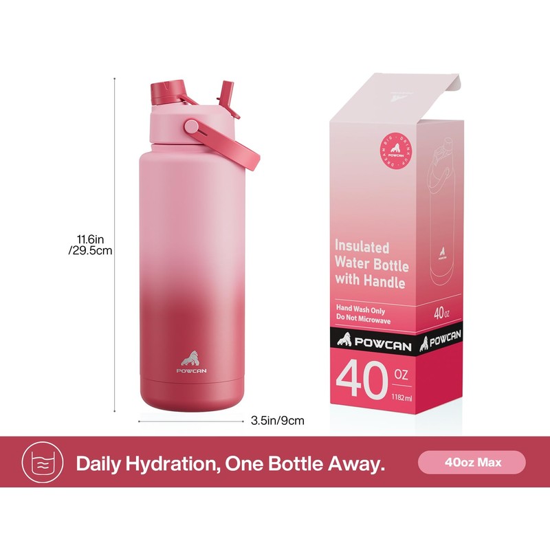 - Generous Capacity: 40 oz provides ample hydration for an entire day; it's ideal for sports, travel, or everyday use; Note: 40 oz does not fit in standard car cup holders
