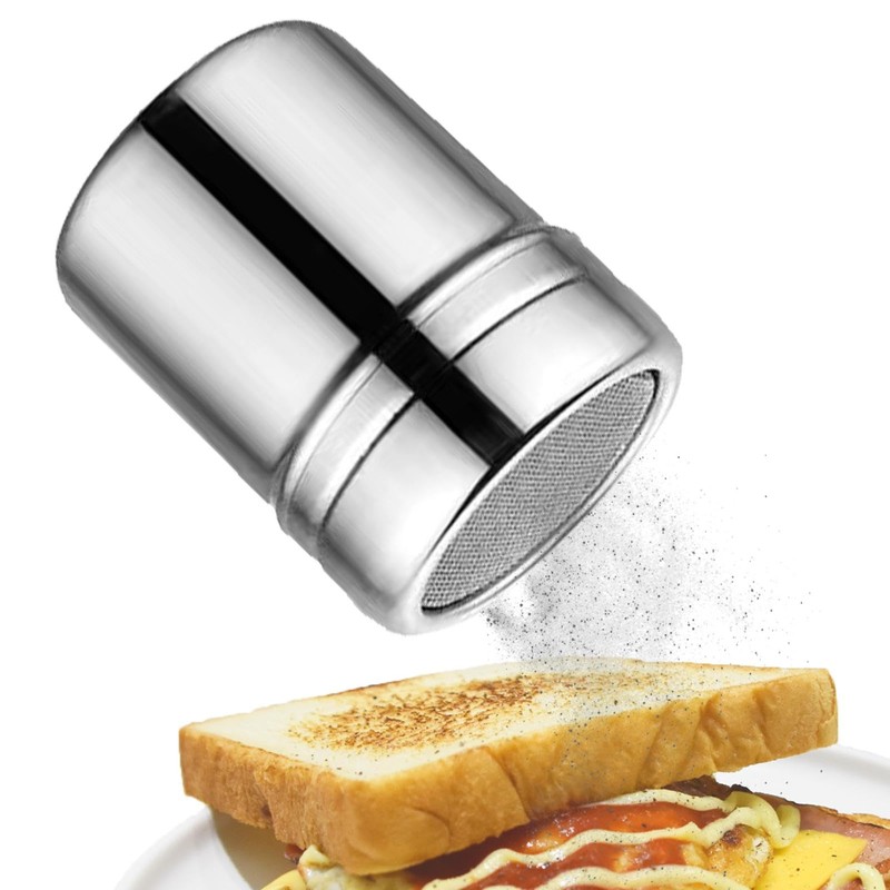 - ♘Widely Used: Ideal for seasoning with salt, flour, cocoa, or sugar, this stainless steel powder shaker enhances your culinary creations, effortlessly transitioning from baking to cooking.