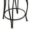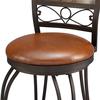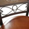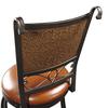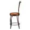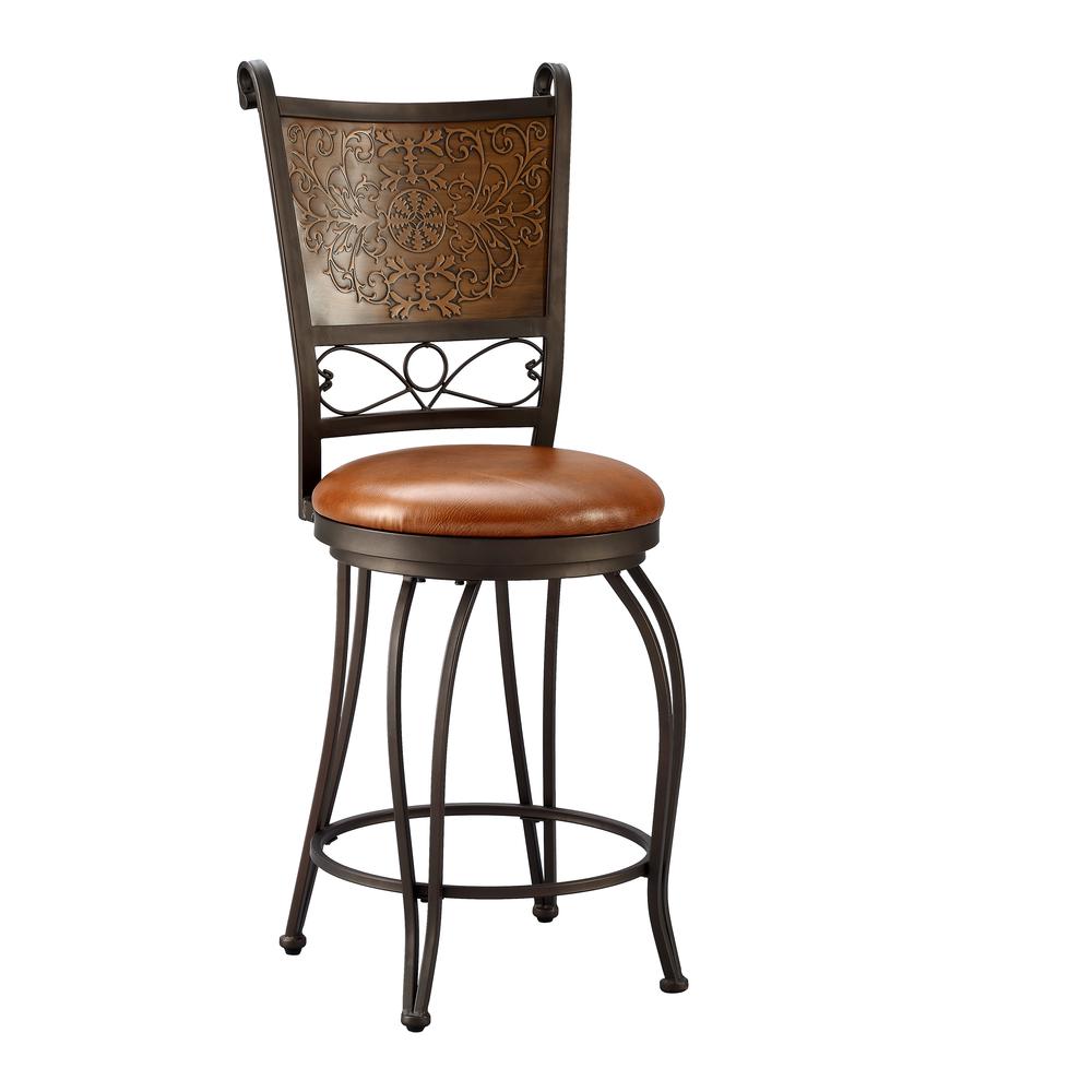 The intricate details on this counter stool make it a unique and eye-catching piece. Finished in bronze and accented with a muted copper, the curved legs and stamped back provide interest to a somewhat simple design. The seat is covered in a rich brown PVC and has a height of 24". Some assembly required.