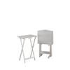 Fit for function and style, the Lisbon Tray Table five piece set has a fresh, cottage flair. The wood stand provides easy storage and has a wood handle for portability. These lovely whitewash tray tables will be an easy pick for use in any room of your home.